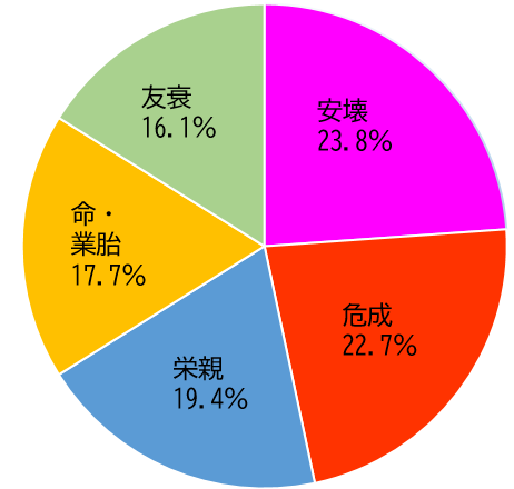 相性ごとで統計をとった場合、最も件数が多い相性の結果は安壊となりました。次点が危成です。
