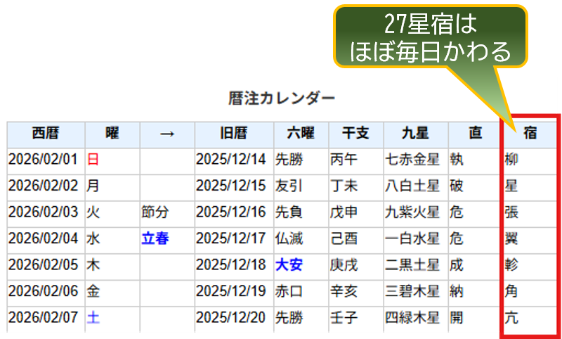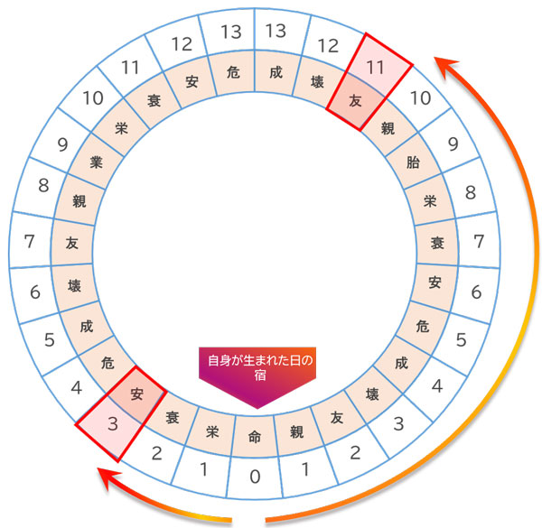 自身の宿と日付の宿の相性でその日の運勢がわかる